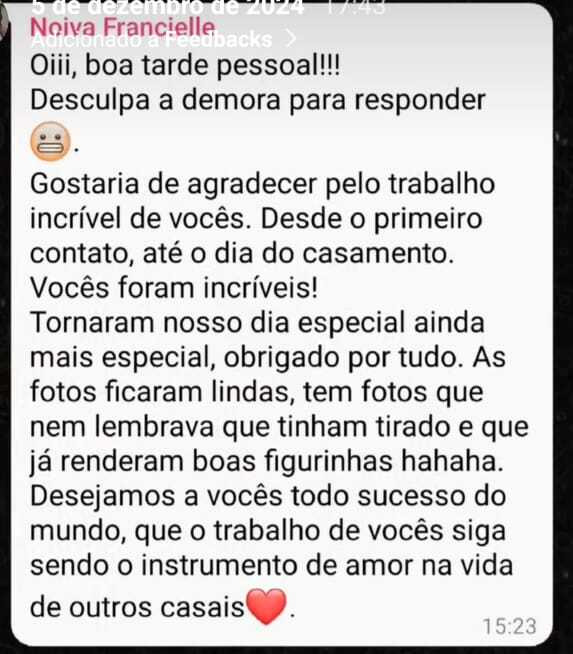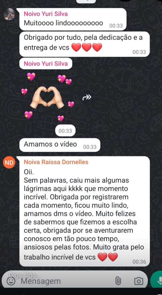 Já fotografamos mais de 100 casamentos ao longo de 10 anos de experiência, lidando com momento únicos de diversas famílias com 100% de feedbacks positivos. Seu atendimento será direto com quem estará lá no dia: sem promessas vazias.