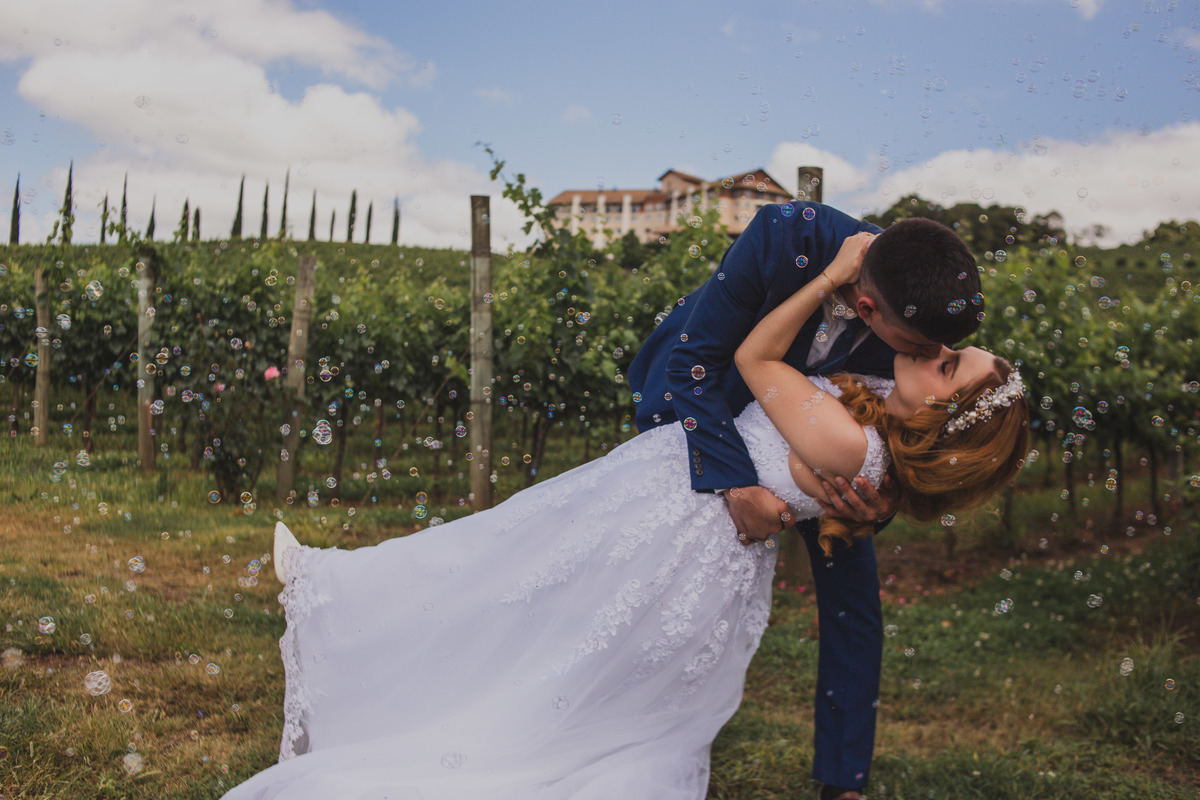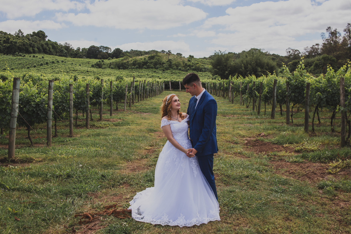 O casamento da Mariana e do Jorge foi um daqueles momentos íntimos e cheios de significado. Eles vieram de outro país da América do Sul para se casar em Bento Gonçalves, cercados apenas pela família dela e pouquíssimos convidados — algo em torno de 15 pessoas, em uma celebração discreta, mas repleta de amor. A cerimônia aconteceu em uma pousada charmosa na região e, depois do “sim”, seguimos para a Vinícola Miolo, onde fizemos fotos lindas entre os parreirais e pipas de vinho. Um casamento simples, leve e emocionante, com aquele clima aconchegante que só os momentos vividos entre os mais próximos conseguem ter.